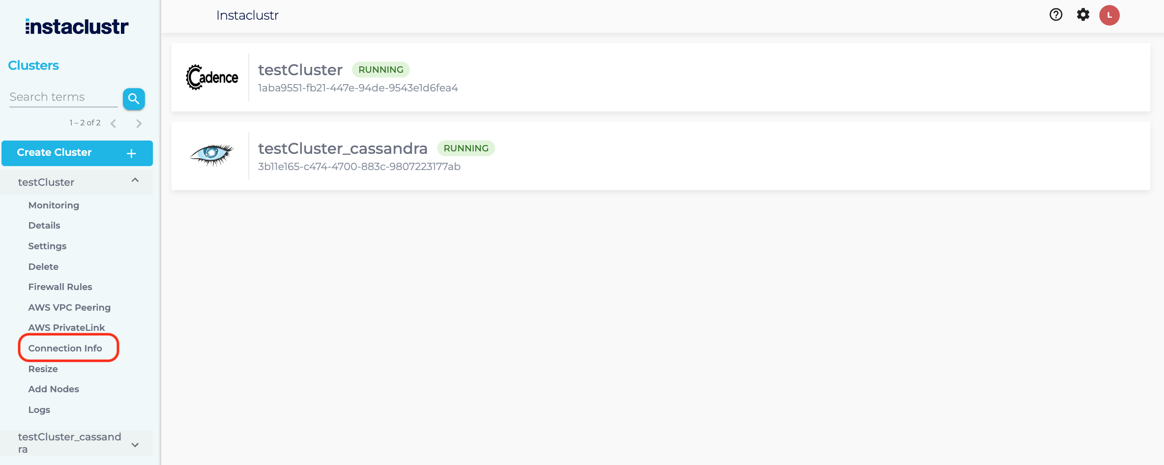 - Log into the console, click the created cluster and enter the Connection Info page.