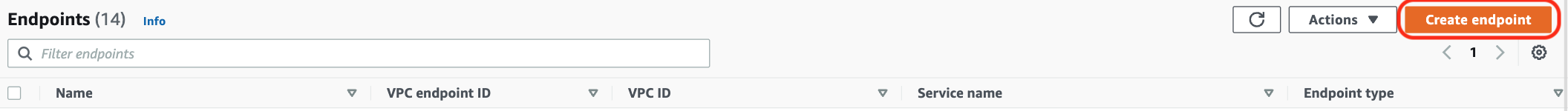 - On the AWS VPC Endpoint Console page, click “Create endpoint”.