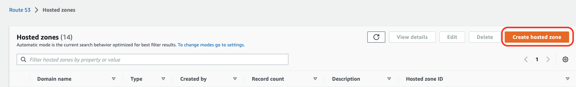 - Head to the Route 53 record home page, enter Hosted Zone and select “Create hosted zones”. https://us-east-1.console.aws.amazon.com/route53/v2/hostedzones?region=us-east-1#