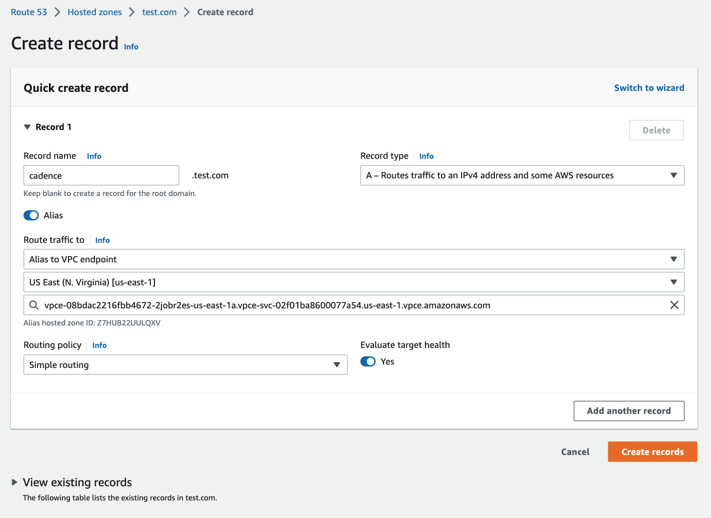 Create Endpoint and Route 53 Record