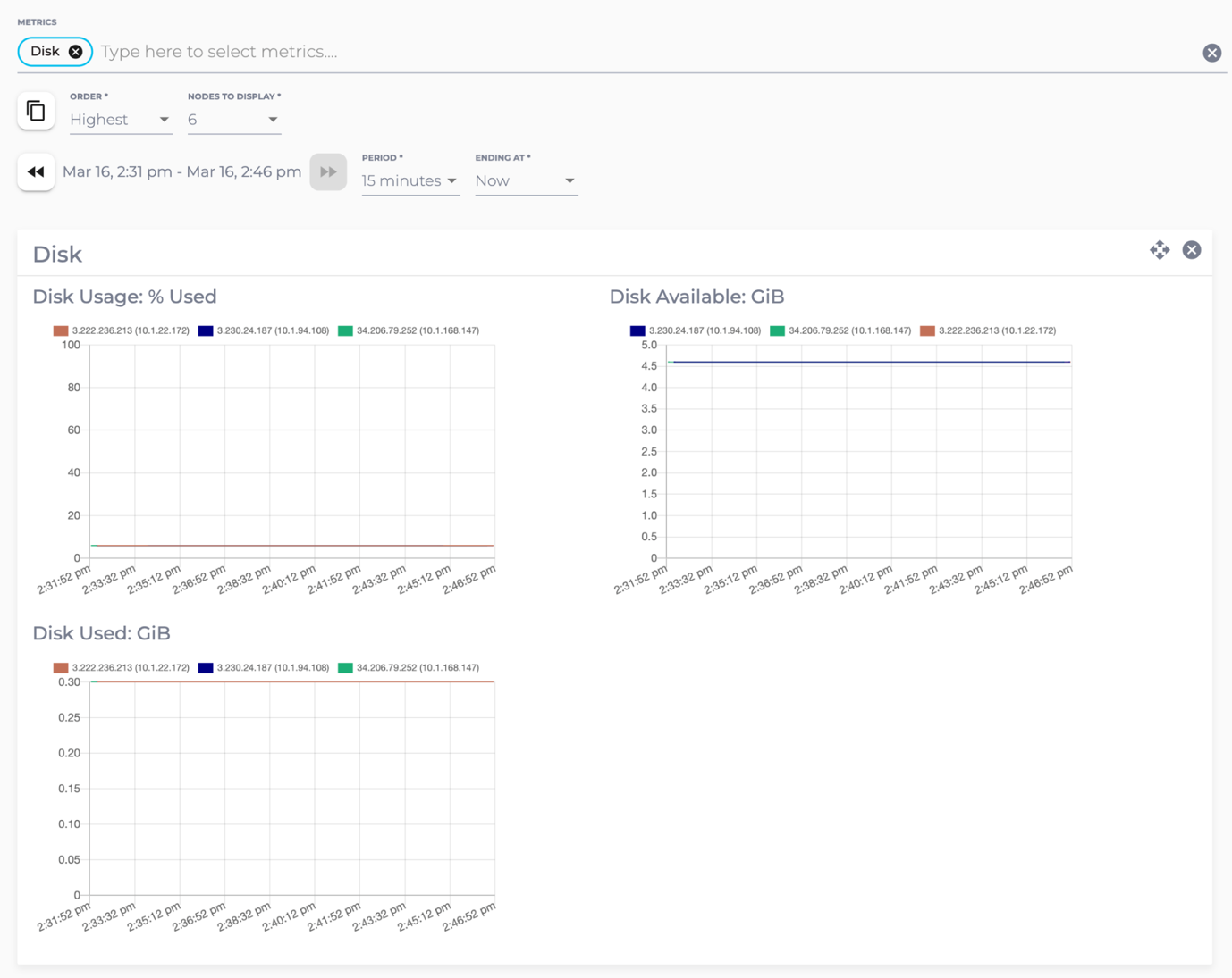 The disk usage metric shows the percentage of space used on the data partition of a node. Cadence nodes only use disk for temporary storage so there should rarely be an issue with disks filling up on Cadence nodes.