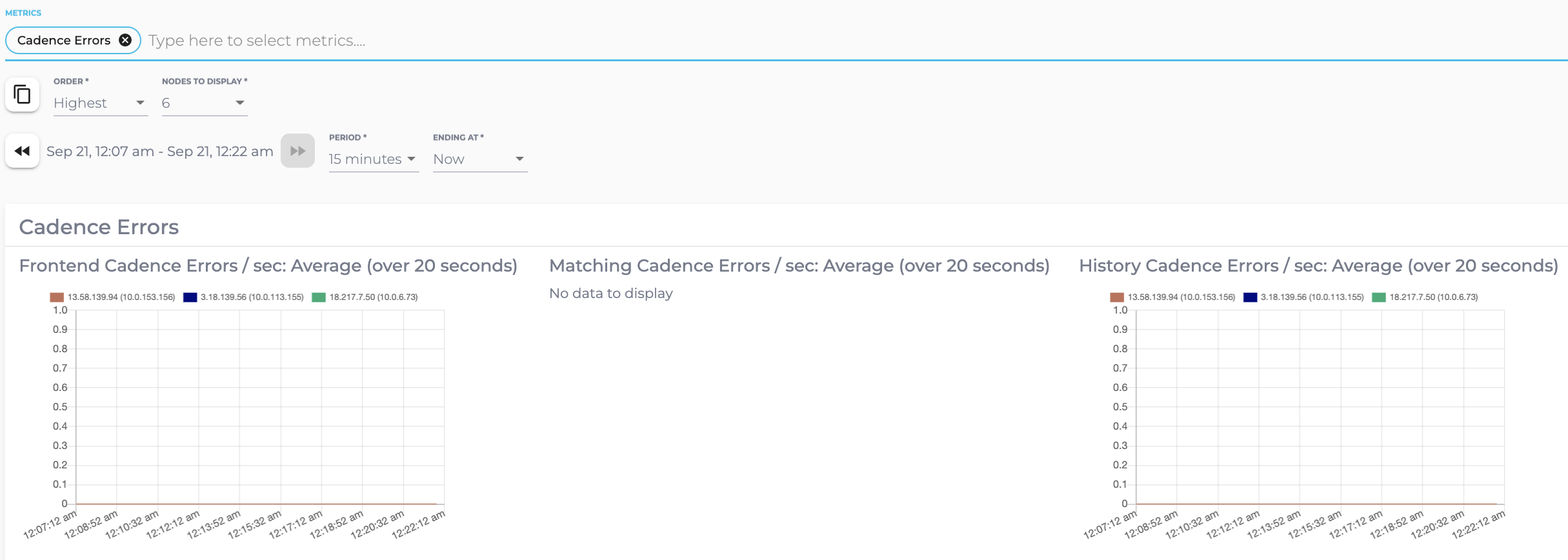 The Cadence Metrics measure the performance/availability of each of the 3 Cadence services (i.e. Frontend, Matching and History). Please note that the Worker service does not export this metric.