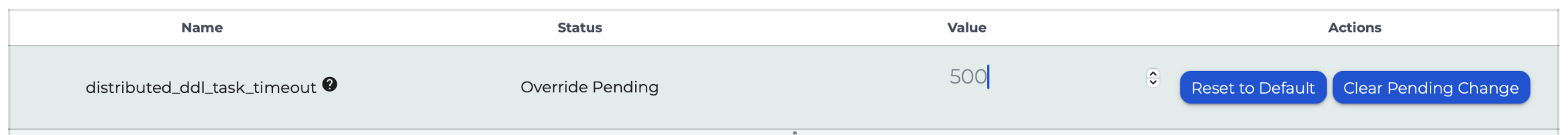 You can “override” the available parameters with values of your choice to alter cluster behaviour to suit your requirements. Some parameters may be constrained by available compute resources, shard-replica configuration etc. and you may wish to review such details before overriding them.