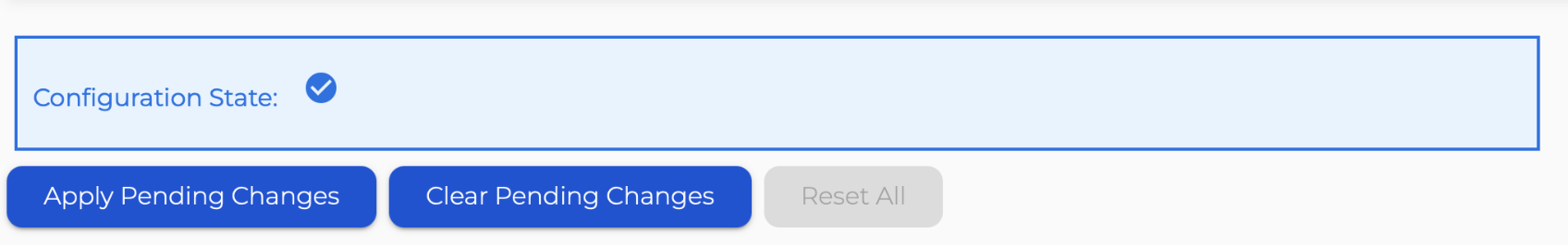 - Pressing “Reset To Default” sets the parameter status to “Reset Pending”, then the reset can be applied by selecting “Apply Pending Changes”.
