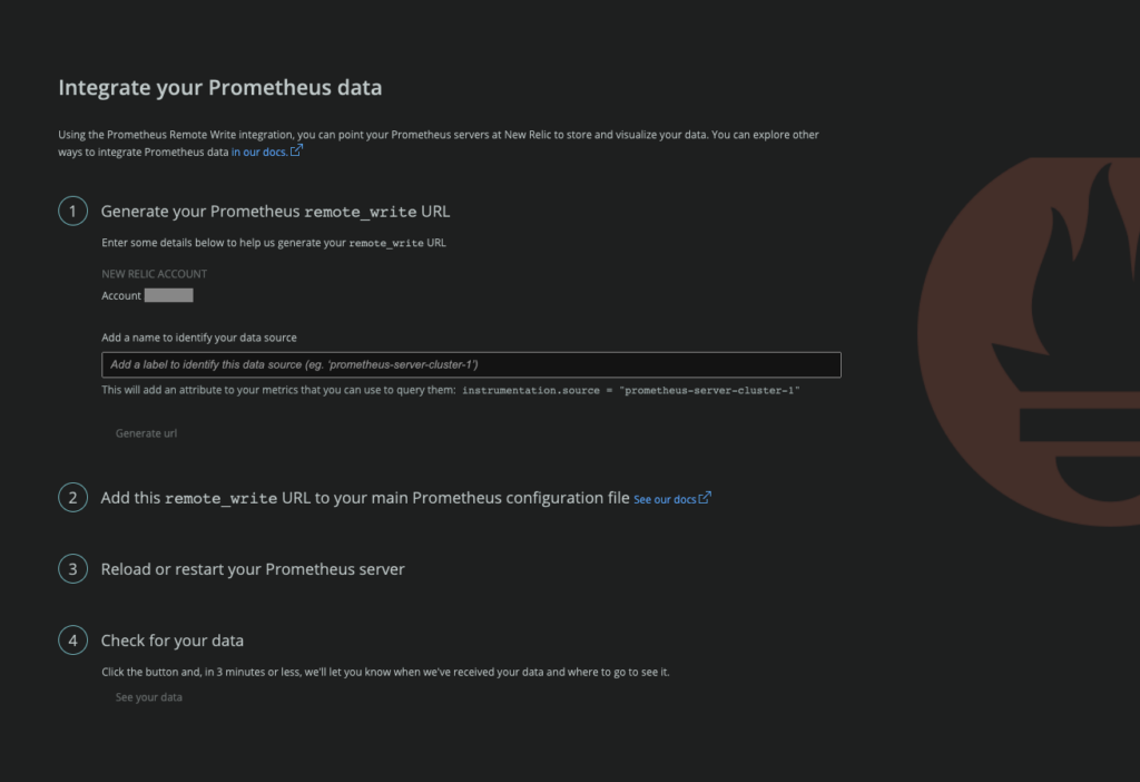 The Prometheus server can now be configured to send to New Relic via a Prometheus configuration called Remote Write.