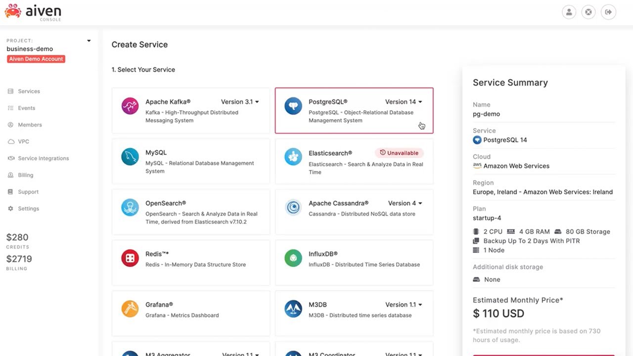 Aiven for PostgreSQL is a managed PostgreSQL service that runs on all major clouds, including AWS, Google Cloud, and Azure. It simplifies database deployment, operations, and scaling through automation and is built with open source technologies.