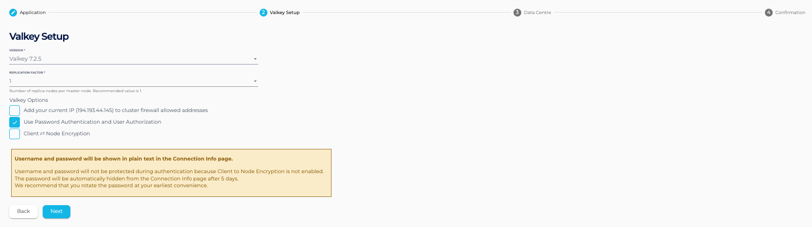 - If you choose to enable Client to Node encryption, any connection to the Valkey cluster using the Instaclustr provided certificate will be encrypted.