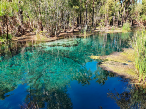 Bitter Springs (Mataranka, NT, Australia) flow at under 1 cubic metre per second, generating a short stream popular for tourists floating at a leisurely rate on pool noodles (Source: Paul Brebner)