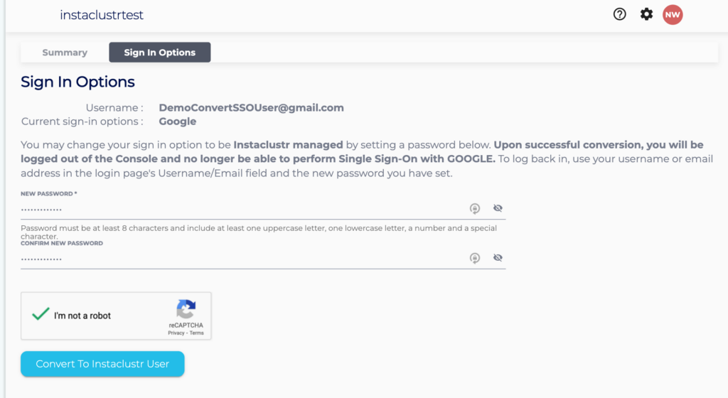 In order to migrate your user, you will be required to set a password. Once the user has been migrated to the Instaclustr managed option, the user will not be able to sign back in with the Social SSO provider.