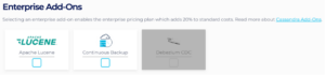 4 – Select any other Enterprise Add-ons you would like to include in the cluster. Note that Cassandra Debezium Change Data Capture Connector Enterprise Addon is not currently supported with AWS PrivateLink.