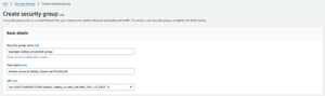 - Under the heading “Security group name”, enter a name for the security group. For example,