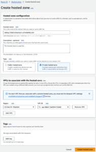 - Ensure you have the following configurations, click “Create hosted zone”.