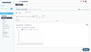The Connection Count metric provides the number of deadlocks in a database at a given point in time. A deadlock occurs when two or more transactions hold locks that the other needs to acquire. This prevents the transactions from acquiring the required locks, blocking them from proceeding. PostgreSQL automatically resolves this by aborting one of the transactions.