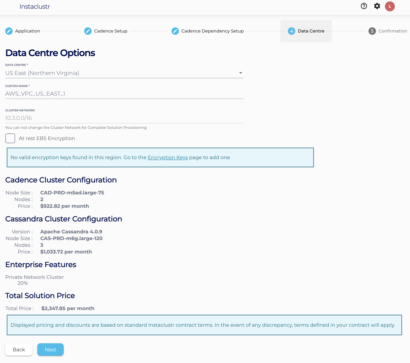 - Under the Data Centre page, confirm the selected Data Centre is correct. Click Next.