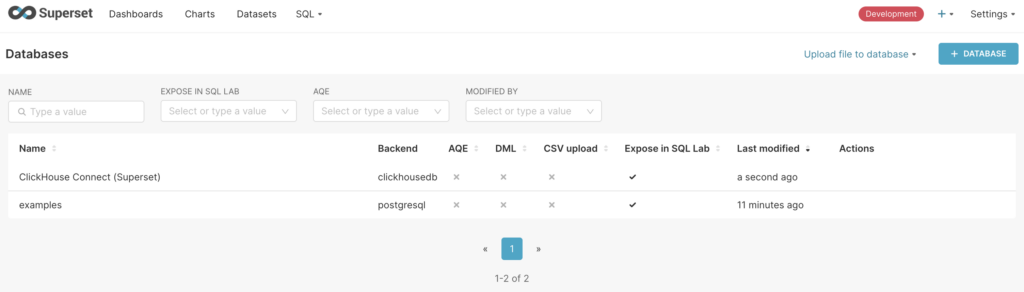 That’s all! At this point your ClickHouse database should be available for use in Superset.