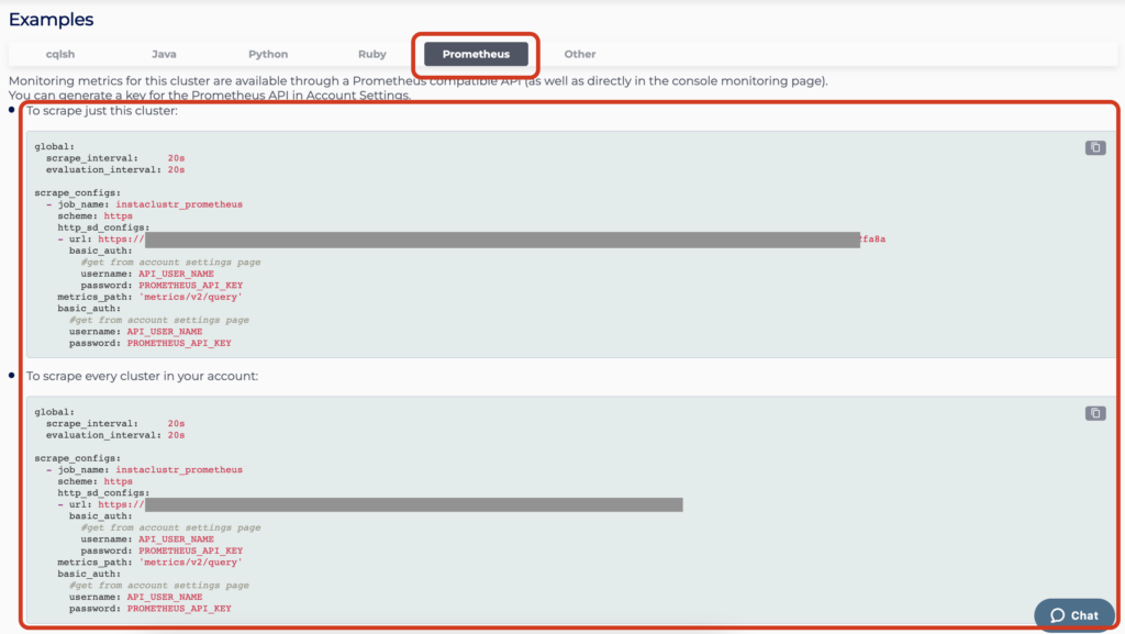 Prometheus can be installed using Docker on a VPS, Kubernetes Cluster or AWS Elastic Beanstalk. For complete installation instructions see the Prometheus Installation Page for the Prometheus project. This support article doesn’t detail how to run a prometheus server as customers should consider their own cloud architecture to find the best solution, however Instaclustr has a number of blogs available which may also assist in setting up an intermediary Prometheus server: